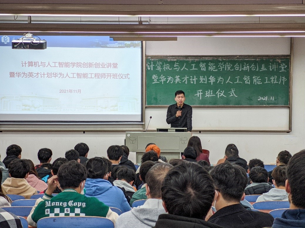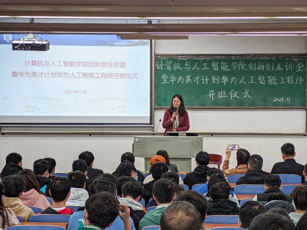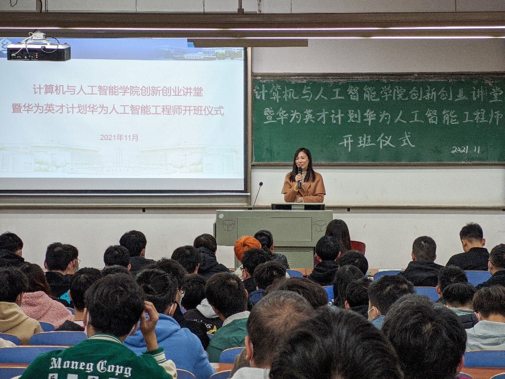 随着网络技术的发展趋势、新时代对网络技术的要求也越来越广。为了进一步增强广老员工获取专业认证证书的意识,营造浓厚的学习氛围,增加员工的实践能力,提升就业综合竞争力,满足企业对人工智能工程师的需求。11月25日下午365英国上市创新创业讲堂暨华为英才计划华为人工智能工程师开班仪式于崇志楼T102教室如期举行,27-28日正式培训在A4030A会议室以线上线下相结合形式举行。公司经理胡新荣、武汉科云信息技术有限公司总经理刘天梅、培训部经理赵辰龙及培训班级班主任孙成艳出席了本次活动。本次活动由公司党委副书记涂耀威主持。