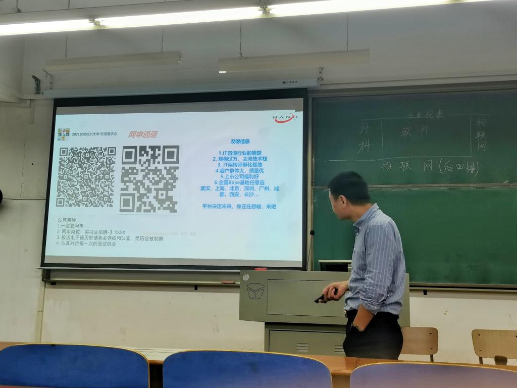 达梦、百家云、上海汉得等5家IT企业负责人通过视频宣传、PPT展示以及面对面交流的方式,讲解当前主流市场IT技术发展的技术,以及学习方向、后期就业员工需要关注公司类型、职业规划、公司规模和行业, 并就关于我们、工作环境、培训机制、企业文化等员工关心的问题做了详细的介绍,与此同时,同学们积极咨询相关岗位薪资以及职业前景,解决了自身在实习、求职方面的诸多疑虑。