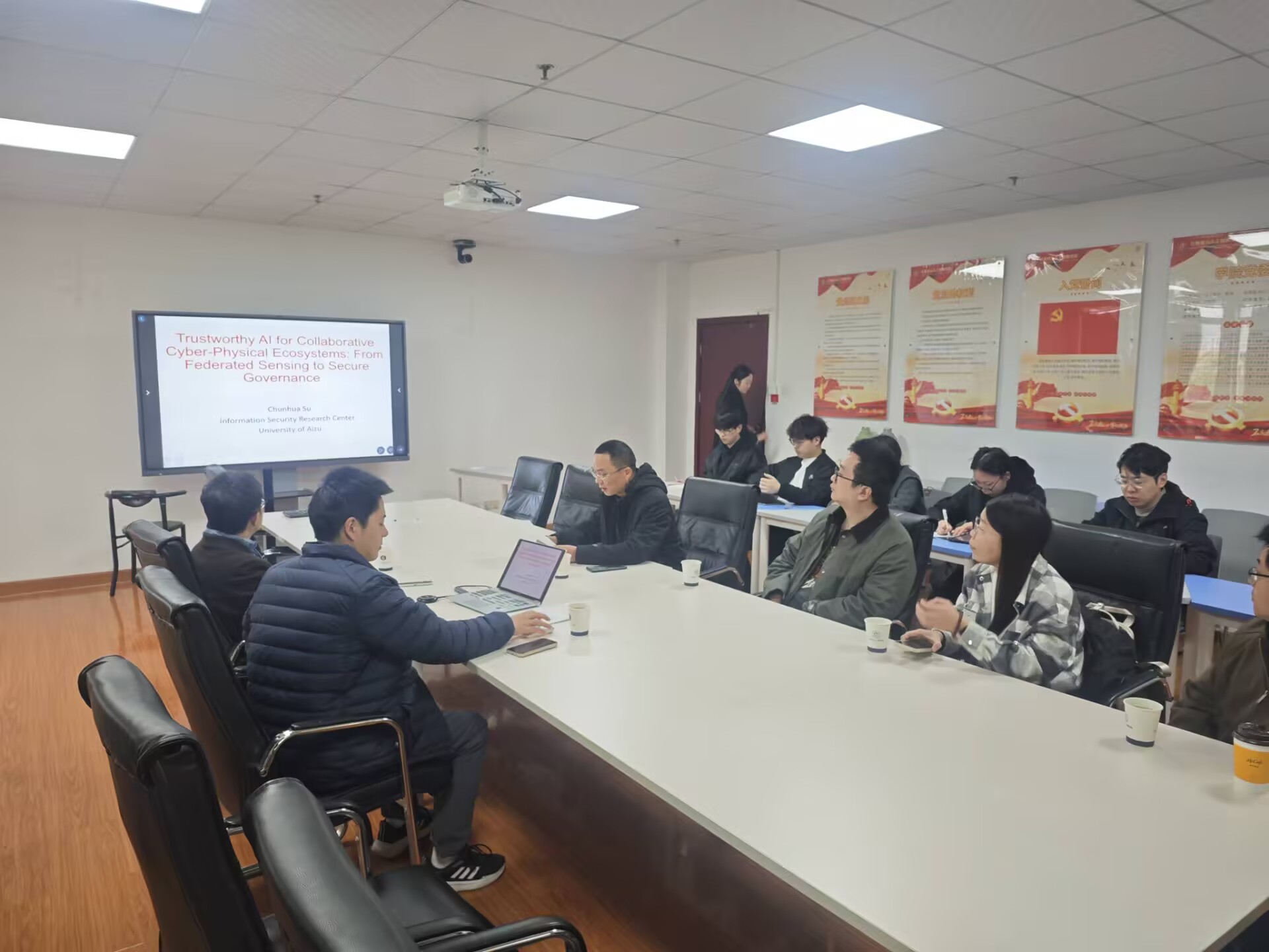 沙龙上,三位专家围绕网络安全与隐私保护技术作了精彩报告。日本会津大学苏春华教授作题为“AI-aided Security for Cyber-Physical Systems”的报告,系统介绍了人工智能辅助下的信息物理系统安全防护技术及在智慧医疗等领域的应用前景;中北大学赵红博士作“AI-Based Physical Layer Key Generation Mechanism”报告,深入阐述了基于人工智能的物理层密钥生成机制;公司朱飞博士作“Lightweight Privacy-Friendly Aggregation Scheme Against Internal Attacks for Smart Grids”报告,分享了面向智能电网的轻量级隐私友好聚合方案研究成果。