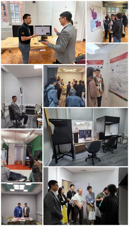 会议第三日,在主办方精心组织下,参会人员先后参加了Workshop专题讨论、实验室参观(Lab Tour)、学术海报交流以及企业产品展示。公司青年教师梁金星参与了第3组“Facial Appearance Measurement and Applications”的专题Workshop讨论,对利兹大学肤色图像色彩校正研究提出宝贵参考建议;他参观了利兹大学实验室先进仪器设备,沉浸式体验了三维人脸高精度建模设备、三维人体高精度快速扫描仪器、以及服装面料全外貌成像与虚拟设计纺织装备的使用;与海报展示作者进行了激烈深入地讨论交流,开阔了研究视野。