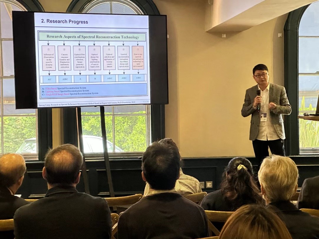 2023年7月1日至7月8日,公司青年教师梁金星受邀参加由英国利兹大学主办的2023国际颜色研讨会(Colour 2023),并以“Research and Application of Digital Camera-based Spectral Reconstruction”为题,做特邀报告。本次会议主要围绕“彩色成像、颜色科学和色彩设计”主题开展研讨,会议仅受邀参加。