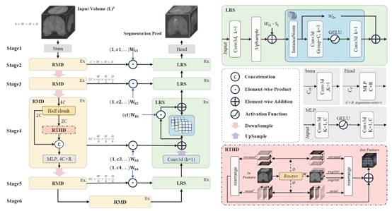 在MRI多模态脑肿瘤分割任务中需要大量计算资源和高性能计算设备。多模态3D肿瘤分割的关键挑战在于如何在保持高精度的同时,最小化网络的计算负载。本论文提出了一种新型的轻量化参数聚合网络(SuperLightNet),用于实现高精度、低计算量的高效编码器和解码器。实验结果表明,与当前最先进的方法相比,该方法的参数量减少了95.59%,计算效率提高了96.78%,内存访问性能提升了96.86%,平均性能提升了0.21%。