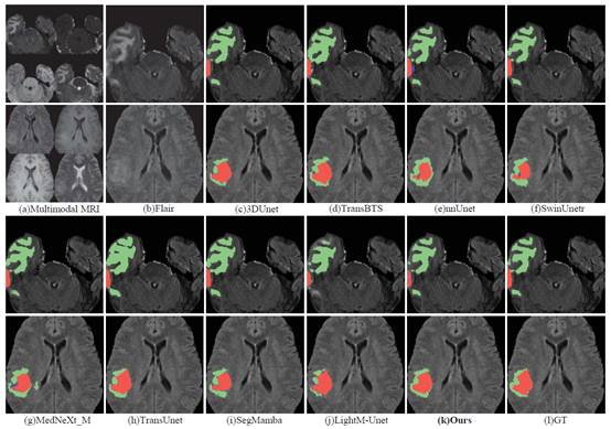 图2 脑肿瘤分割结果对比