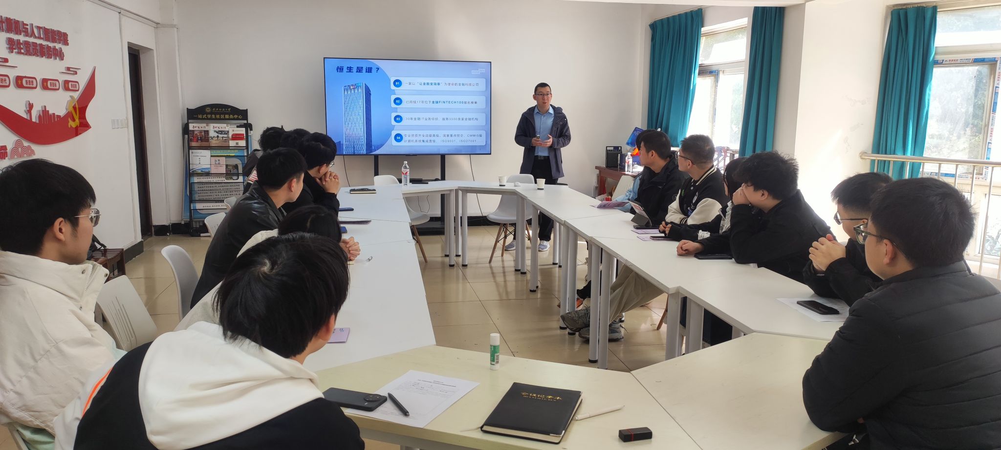 宣讲会上,张经理首先介绍了恒生电子的发展历程、企业文化和核心价值观。作为一家以“让金融变简单”为使命的金融科技公司,恒生电子致力于为证券、期货、基金、信托、保险、银行、交易所、私募等提供整体解决方案和服务,并已连续16年入选FinTech100全球金融科技百强榜单。