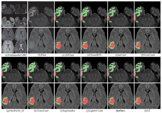 图2 脑肿瘤分割结果对比