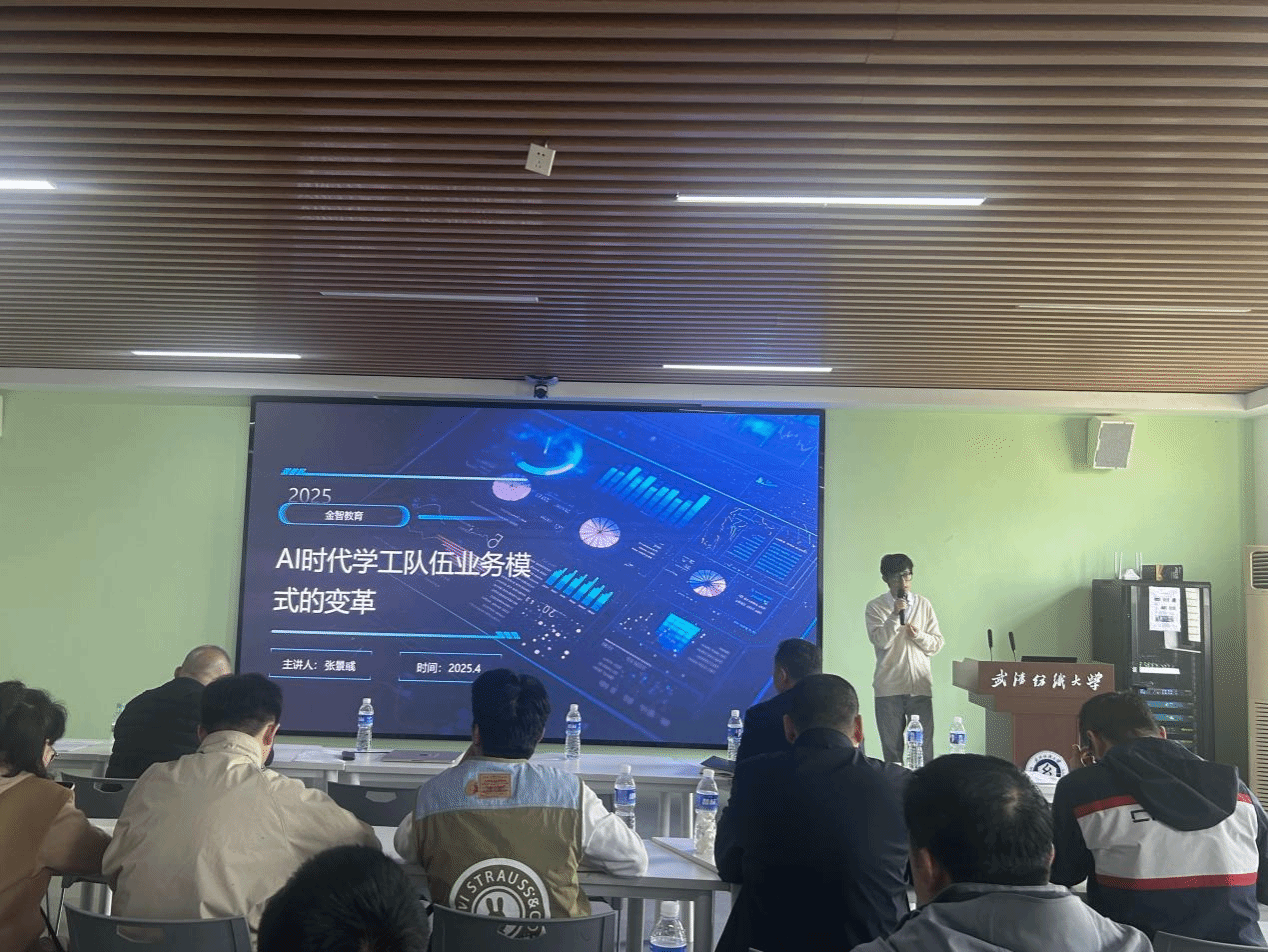 金智教育辅导猫产品经理张景彧则聚焦于“AI+学工业务模式的演变”,探讨了AI时代下学工业务模式转变的必要性。他提出,业务数据正从记录向建议进化,并分享了AI辅导员在促进辅导员职业能力提升方面的应用探索。张经理的演讲为现场观众展示了AI技术在日常管理和思政教育中的广阔前景。