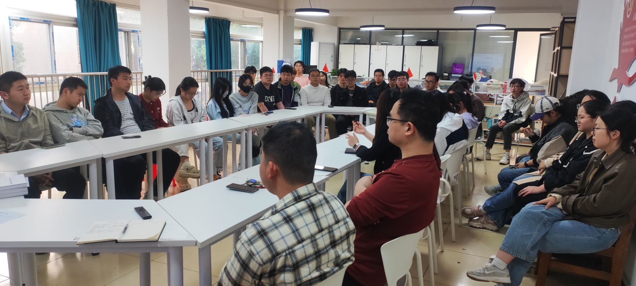 黄晋和阮晓莉也纷纷发言,为同学们加油鼓劲。黄晋鼓励同学们打破思维定式,充分发挥自身长处,广开思路,在更广阔的职业领域中寻找发展机会,不要只专注于计算机岗位。阮晓莉则着重提醒二战的同学,要重视找工作的经历,通过实践积累宝贵的经验,为未来的职业发展做好充分准备。