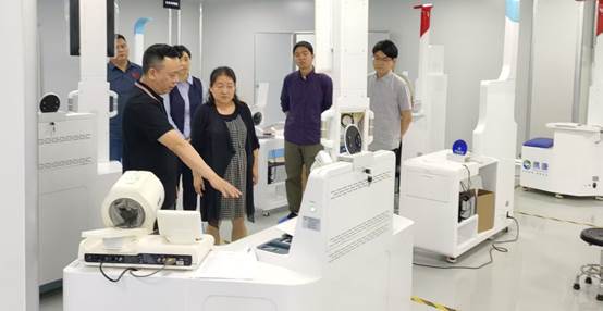 在携康智能,胡新荣一行先后参观了公司产品陈列馆和生产车间,围绕智能可穿戴、跨机构隐私保护等技术开展了深入交流,就数据与仪器设备共享、成果转化、项目共同研发等进行了探讨。