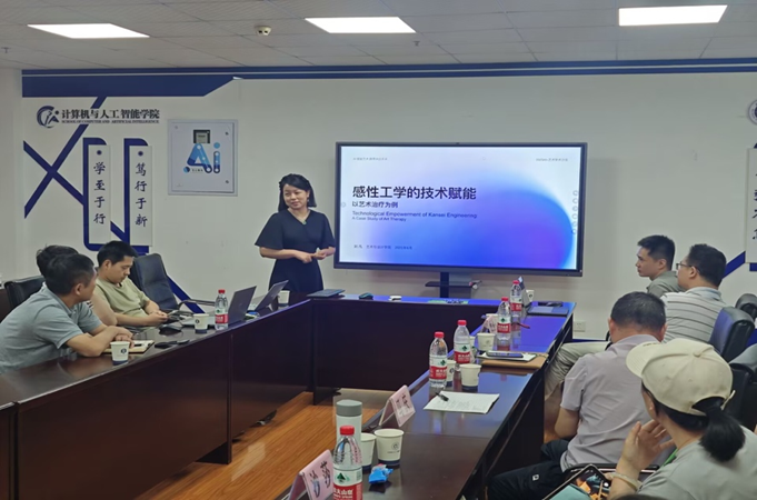 艺术与设计公司副经理刘凡教授以《感性工学的技术赋能》为题,详细介绍了感性生理学、感性信息学、感性工学创作的内涵。她以指导员工发表的《基于纺织纤维媒介的留守儿童情绪调节路径研究》论文为例,从艺术治疗理论与发展史、留守儿童心理问题及干预现状、纺织纤维艺术治疗理论基础与心理机制等方面,展示了技术与人文关怀的深度融合。