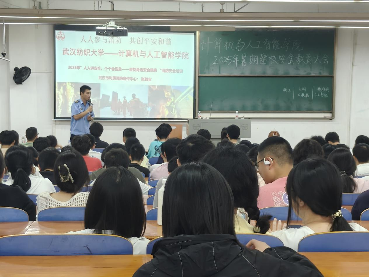 最后,利民消防中心讲解员张教官为同学们开展了暑期消防安全专题培训。他围绕火灾隐患排查、灭火器材使用、应急逃生技巧等内容进行了系统讲解,并结合真实案例深入剖析了火灾的危害性及应急处置要点。通过现场互动,进一步增强了同学们在突发情况下的应对意识和自救能力。张教官强调,同学们应熟练掌握基本的灭火技能和逃生方法,切实提升安全防范意识,同时积极将所学知识传递给家人和朋友,共同营造安全、和谐的社会环境。