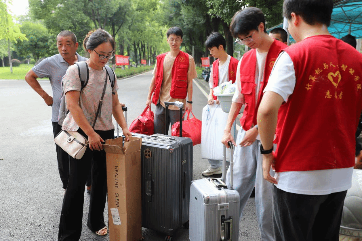 迎新现场,公司组建的志愿者团队全程护航。志愿者们提前接受培训,明确分工,从校门口引导、行李搬运,到报到流程讲解、校园路线指引,始终以热情的态度、耐心的服务,帮助新生快速完成注册、物资领取等手续,用行动传递校园温暖,为新生带来一堂生动的“思政课”。