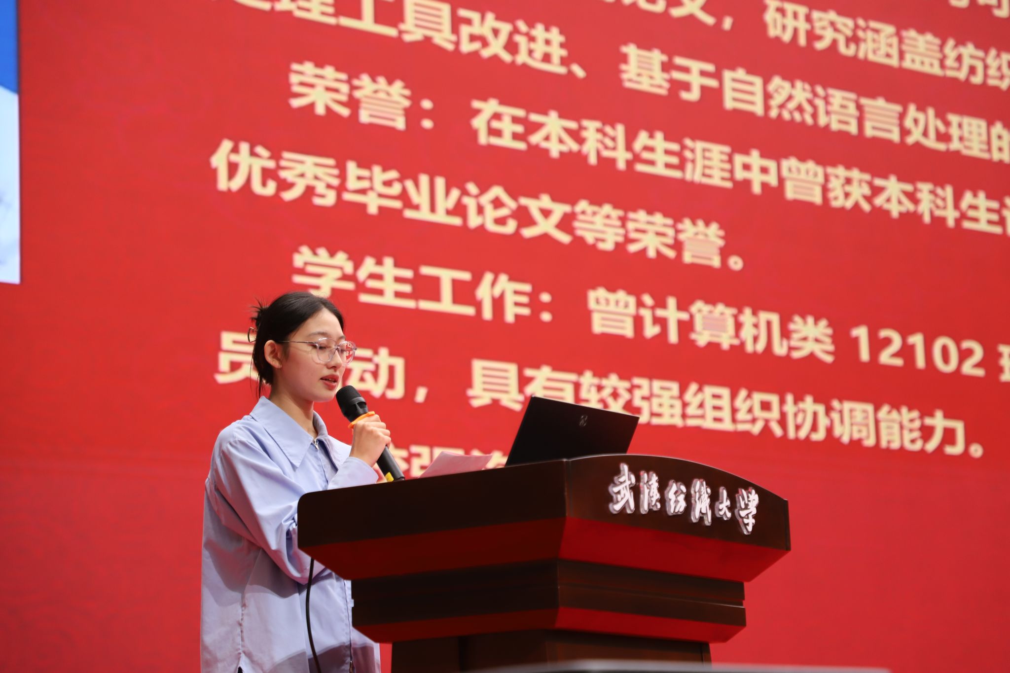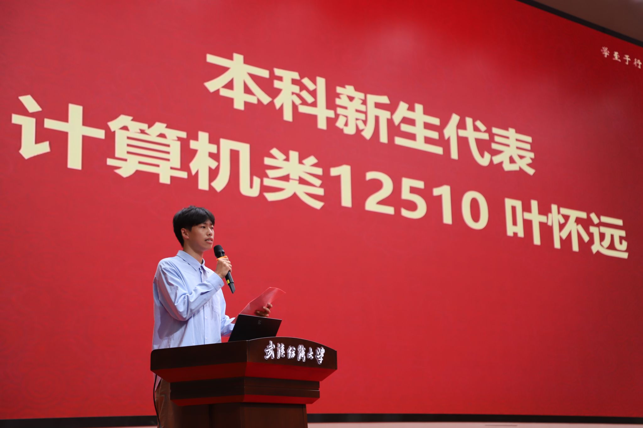 本科新生代表叶怀远分享了与武纺大、与计算机专业结缘的故事,表达了对老员工活的憧憬与将个人理想融入祖国需要的坚定信念。