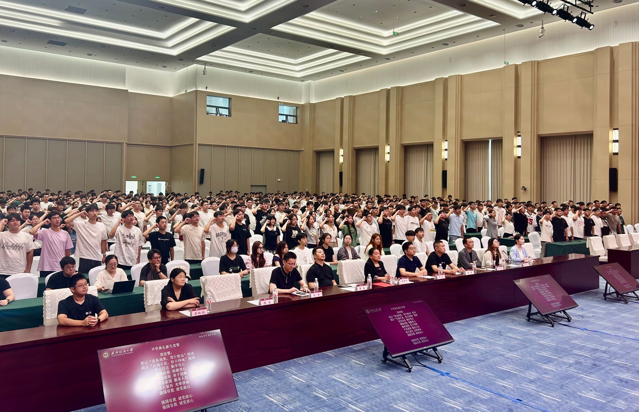 新生入学宣誓环节,在叶怀远同学的带领下,全体新生举起右拳,肃立宣誓,誓言铿锵,信念如磐,展现了2025级计智学子昂扬的精神风貌和矢志奋斗的坚定决心。