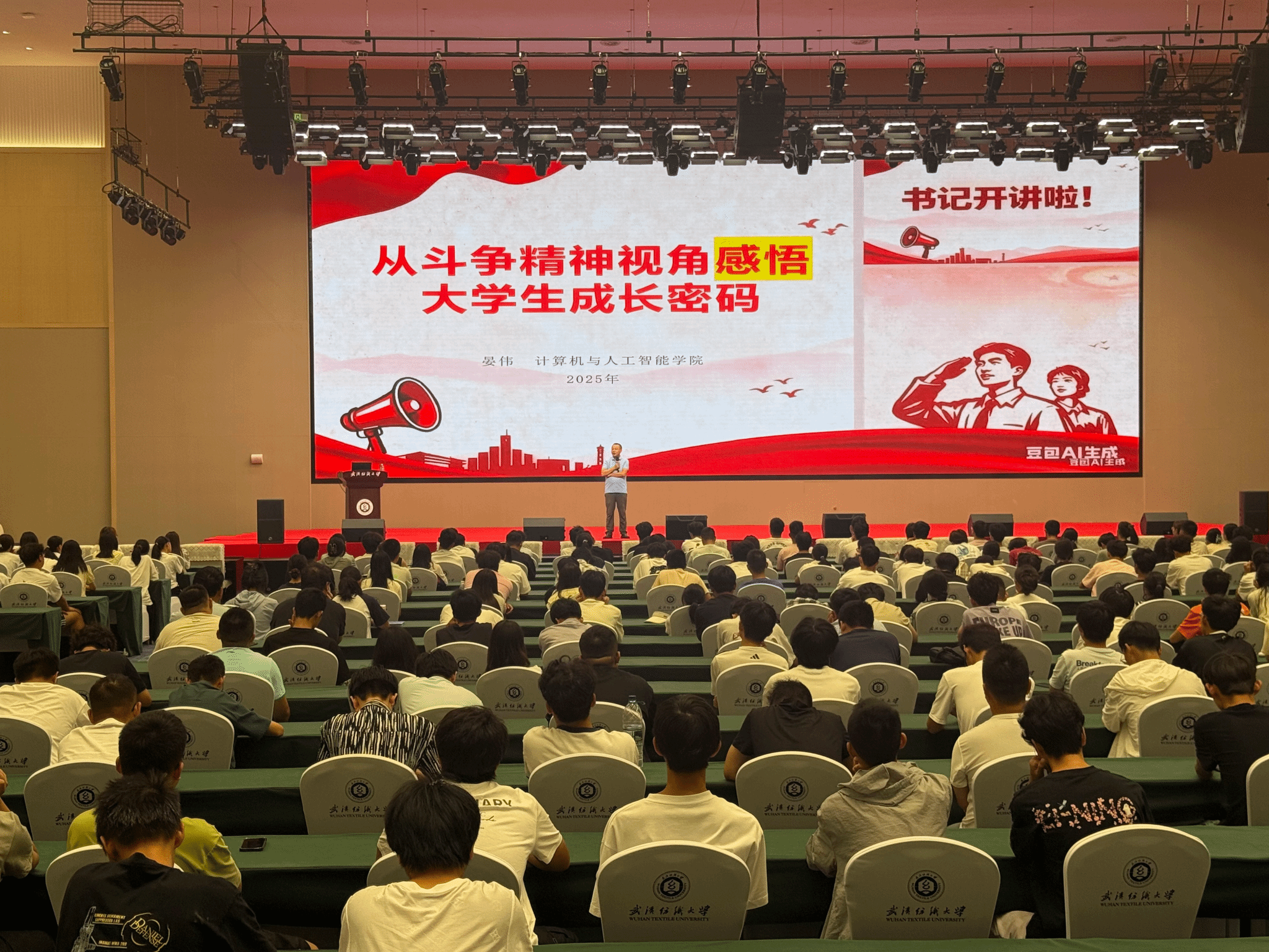 三是要以党的破局智慧为钥,敢创新求突破,“勇于突破”激活老员工“成长潜能”。他以红军陕北会师以来成长壮大中的破局智慧为例,突出“勇于突破”是打破“成长天花板”、激活自身潜能的关键,是应对风险挑战、开创发展新局的核心能力。他希望同学们立场坚定、自力更生、积少成多,强调创新是计算机与人工智能领域的灵魂,呼吁同学们要打破“应试思维”和“路径依赖”,在课程学习、项目开发和学科竞赛中敢于提出新想法、探索新路径,将“创新潜能”转化为实实在在的“破局成果”。