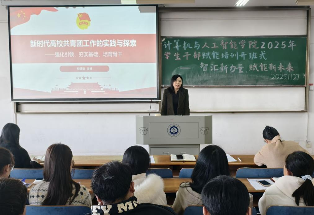 侯畅以《新时代高校共青团工作的实践与探索》为题,为全体学员讲授开班第一课。她以共青团百年奋斗史为主线,系统梳理了共青团工作的历史沿革与基本经验,引导学员深刻领会“青春向党、不负人民”的精神传承。结合高校实际,她进一步阐述了新时代基层团组织青年工作的实践方向,强调基层团组织要围绕“四力”加强建设:强化思想引领,提升引领力;发挥先锋作用,增强组织力;强化服务功能,提升服务力;深化改革创新,增强战斗力。