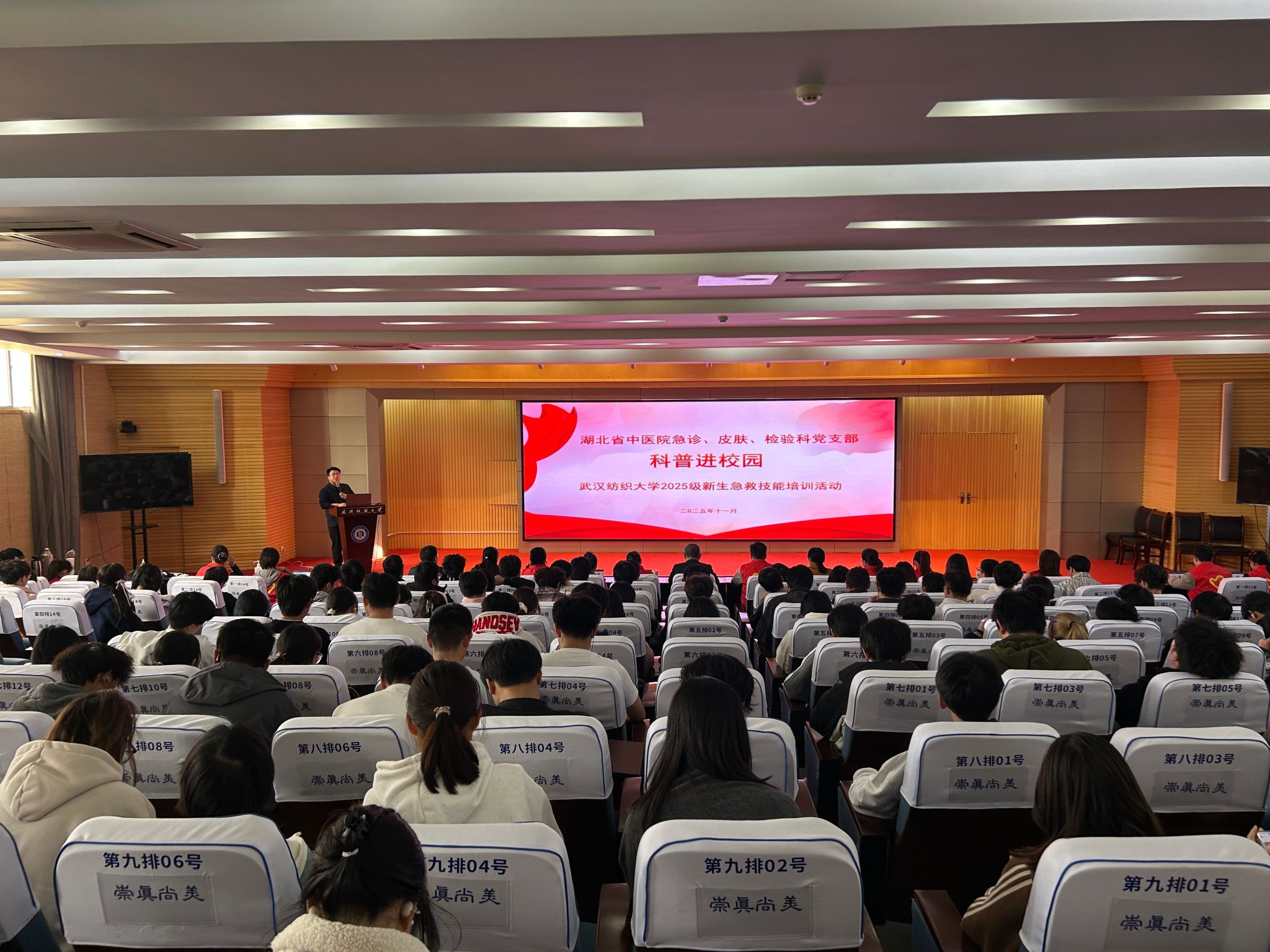 为提升师生急救知识储备与健康素养,增强应对突发状况的能力,11月27日下午,365英国上市联合校医院、湖北省中医院,在阳光校区国际学术报告厅开展“急救科普进校园”活动。活动中,湖北省中医院医疗专家(急诊科主任李刚,皮肤科、检验科、中医学等专家)、护理专家(急诊科护士长肖洁、120急救站站长黄明霞等)为员工带来一场生动形象的急救科普教育课。校医院副经理向玉桂,公司党委书记晏伟、党委副书记向涛,辅导员汤若釴、李港,“展翌”志愿服务队队员及2025级同学共同参与,活动由公司员工安全工作组组长廖龙主持。