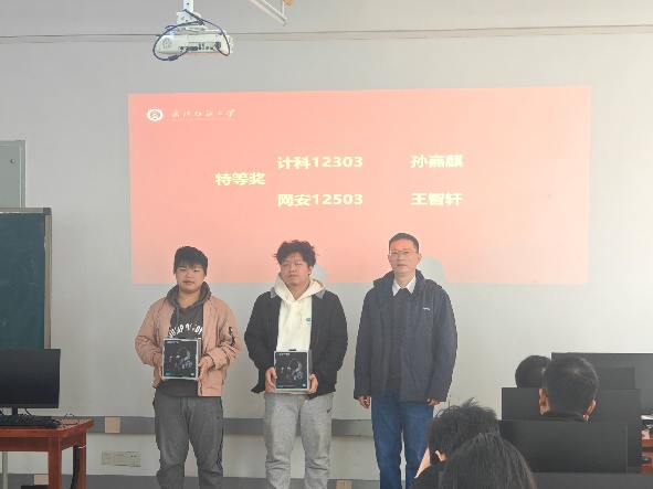 随后举行的颁奖典礼将现场气氛推向高潮。赛事奖项按新生与老生分别评比,共14名同学获奖。孙嘉麒、王智轩两位同学凭借顶尖表现,荣膺本次比赛的特等奖。高延榛、汤玉迪荣获一等奖,钟宇峰等4名同学获得二等奖,万福辉等6名同学获得三等奖。公司领导及教练张自力老师依次为获奖选手颁奖并合影留念。