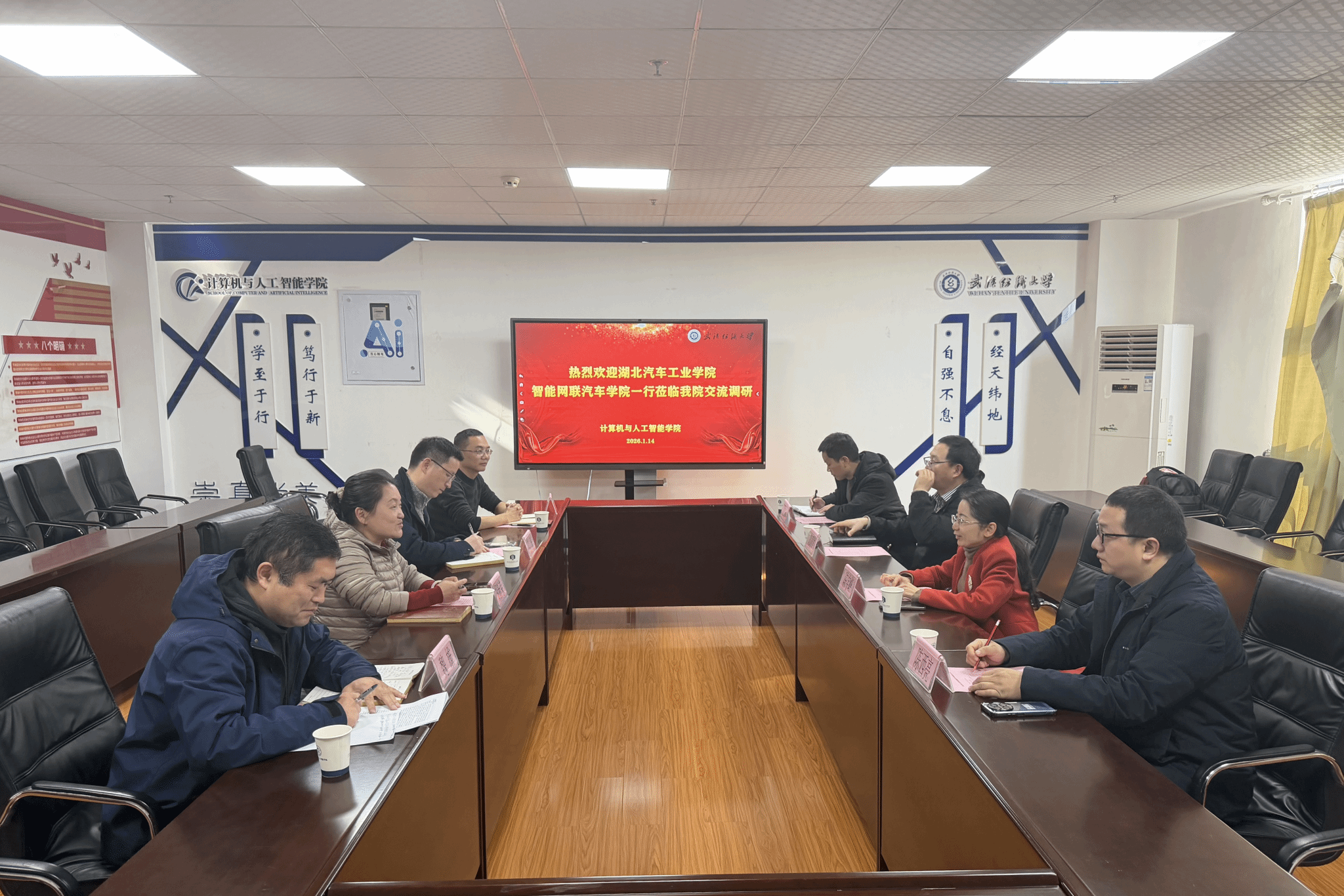 1月14日上午,湖北汽车工业公司智能网联汽车公司经理陈宇峰一行莅临公司进行参观交流。经理胡新荣等院领导热情接待了来访嘉宾,双方在公司会议室举行交流洽谈会。