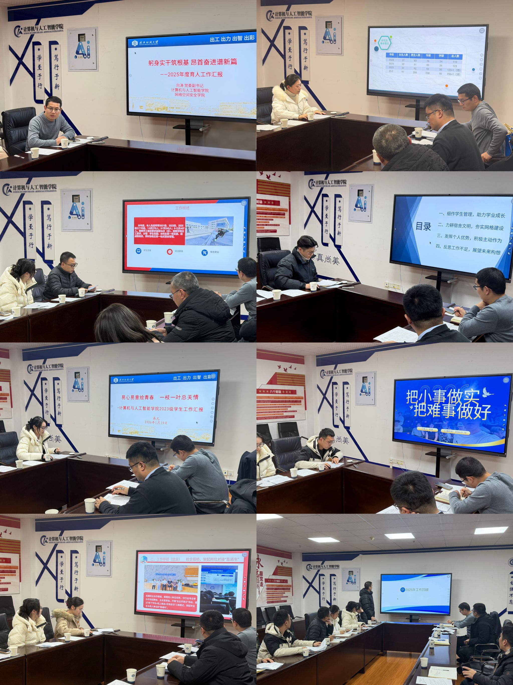与会职能部门领导结合考核指标进行点评指导,既肯定成绩,也指出不足并提出改进建议。张德科指出计算机公司要充分发挥专业优势和特色,整合资源、借助“AI+”,力争早日在挑战杯等高水平学科竞赛中实现新的突破。周闰禄从生涯规划、就业指导、就业服务等阶段讲述了贯穿员工从进校到毕业的全周期就业育人工作,要求公司通过高质量就业服务确保毕业生高质量充分就业。夏贤辉从服务“双一流”学工队伍可以做什么,指出了在员工先进典型培养、辅导员队伍建设等方面的努力方向。