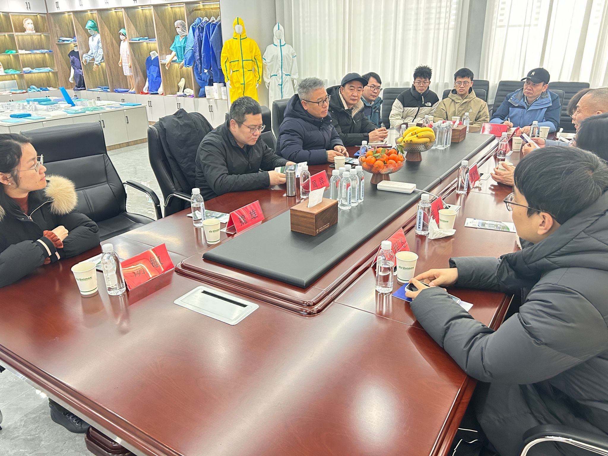 联好防护相关负责人对何教授团队的到来表示欢迎,并期待通过校企合作,将人工智能前沿技术应用于生产实际,共同开发适用于防护纺织品制造的智能化解决方案。