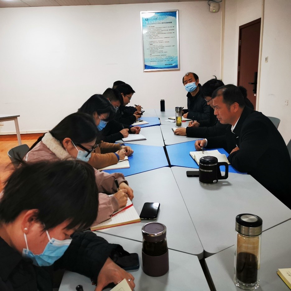 何儒汉分别就研究生工作区管理、员工每日打卡、毕业生就业以及职工管理等问题进行了通报与交流,要求大家进一步加强研究生和本科生的融合管理。涂耀威要求大家在疫情防控的重要时期,心往一处想、劲往一处想,拧成一股绳,用责任心、爱心、智慧,把员工工作做细、做实。辅导员们就存在的疑惑与困难进行了沟通,就分管的工作进行了交流。