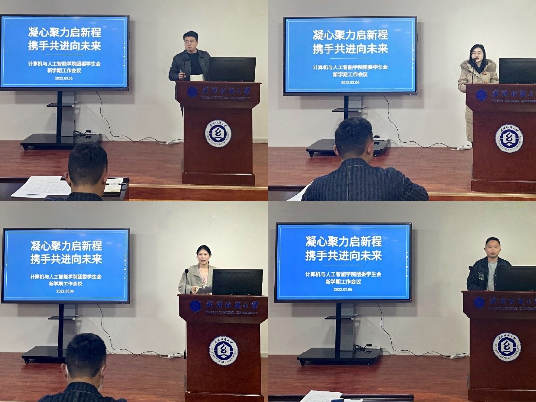 i心苑部长裴进重点结合本学期的3·25老员工心理文化节和5·25心理健康日将要开展的主题活动进行了较为具体的规划安排,以保证活动达到向同学传递良好的心理健康理念、鼓励同学积极关注自身心理健康的预期效果;志愿者协会部长李进宇强调本学期将在校内外结合线上线下多种方式开展更加贴合计算机专业特色的主题志愿服务活动,并联合媒体运营部加强志愿活动的宣传工作,提高公司影响力;学习实践部部长靳然提到新学期会严格日常查课制度,同时将根据实际需要开展各类新工作协助公司加强学风建设。