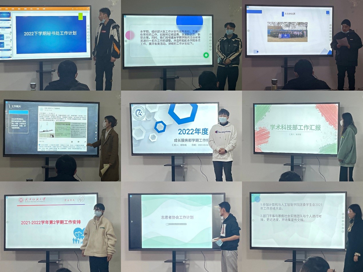 会上,各部门部长就上一学期工作进行总结分析,指出了不足之处,并结合本学期的各项任务制定了详细的工作计划及注意事项,同时相应部门的分管主席对工作规划进行了适当补充,旨在更加完美地完成本学期的工作。