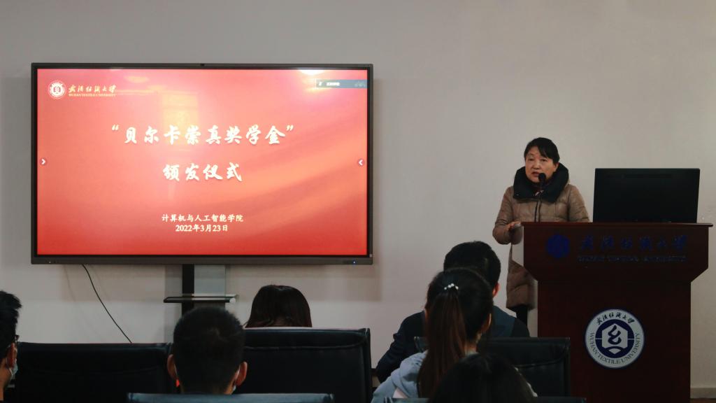 3月24日下午,公司在崇真楼A4030会议室举行了“贝尔卡崇真奖学金”和“广州擎云奖学金”的颁奖仪式。武汉贝尔卡药业有限公司首席技术官李江锋和广州品高(擎云控股公司)资产管理部经理柯江利应邀参加了此次颁奖仪式。经理胡新荣,副书记涂耀威,经理助理计科系主任彭涛、人工智能系主任李丽老师也出席了本次活动,仪式由公司副书记涂耀威主持。按照校内疫情防控要求,本次仪式通过线上线下相结合的方式进行。