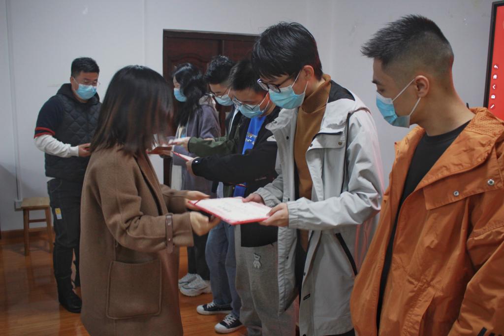 最后,彭涛和李丽老师宣读了获奖员工名单,瞿翔、毛阳珍、许德森、罗福特、冯田甜、李娜娜、王盈、李佳豪获得“贝尔卡崇真奖学金”。徐震阳、陈小雪、任晓天、肖勇、张露熹、罗顺、马清、赵云峰获得“广州擎云奖学金”,随后与会嘉宾为获奖员工颁奖。20级本科生李娜娜和19级本科生徐震阳同学作为奖学金获得者代表在会上发言,感谢企业给予了他们这次宝贵的实习机会,同时分享了实习期间的经历和收获,并号召同学们要勇敢拼搏、不负韶华。