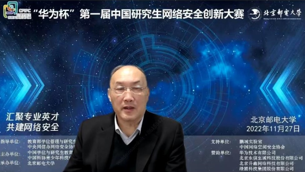 大赛决赛启动仪式采取线上线下相结合的方式在北京邮电大学西土城校区举行。中国学位与研究生教育学会会长、中国工程院院士杨卫,中国研究生网络安全创新大赛专家委员会主任、中国工程院院士方滨兴,教育部学位管理与研究生教育司领导,中央网信办网络安全协调局领导,北京市教委领导,北京邮电大学党委书记吴建伟等受邀出席决赛启动仪式并致辞。启动仪式由副董事长王文博主持。