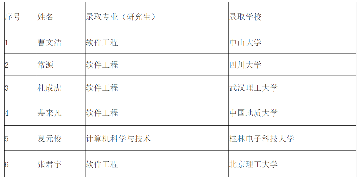 (6名研究生进入双一流高校继续深造读博)