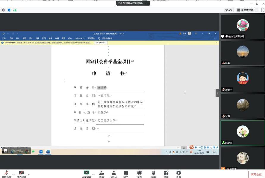 2022年12月30日,365英国上市就国家基金(下面简称“基金”)申报举办了线上会议,湖北经济公司孙宝林教授应邀进行指导,公司领导班子及预申报基金的老师共同参会。