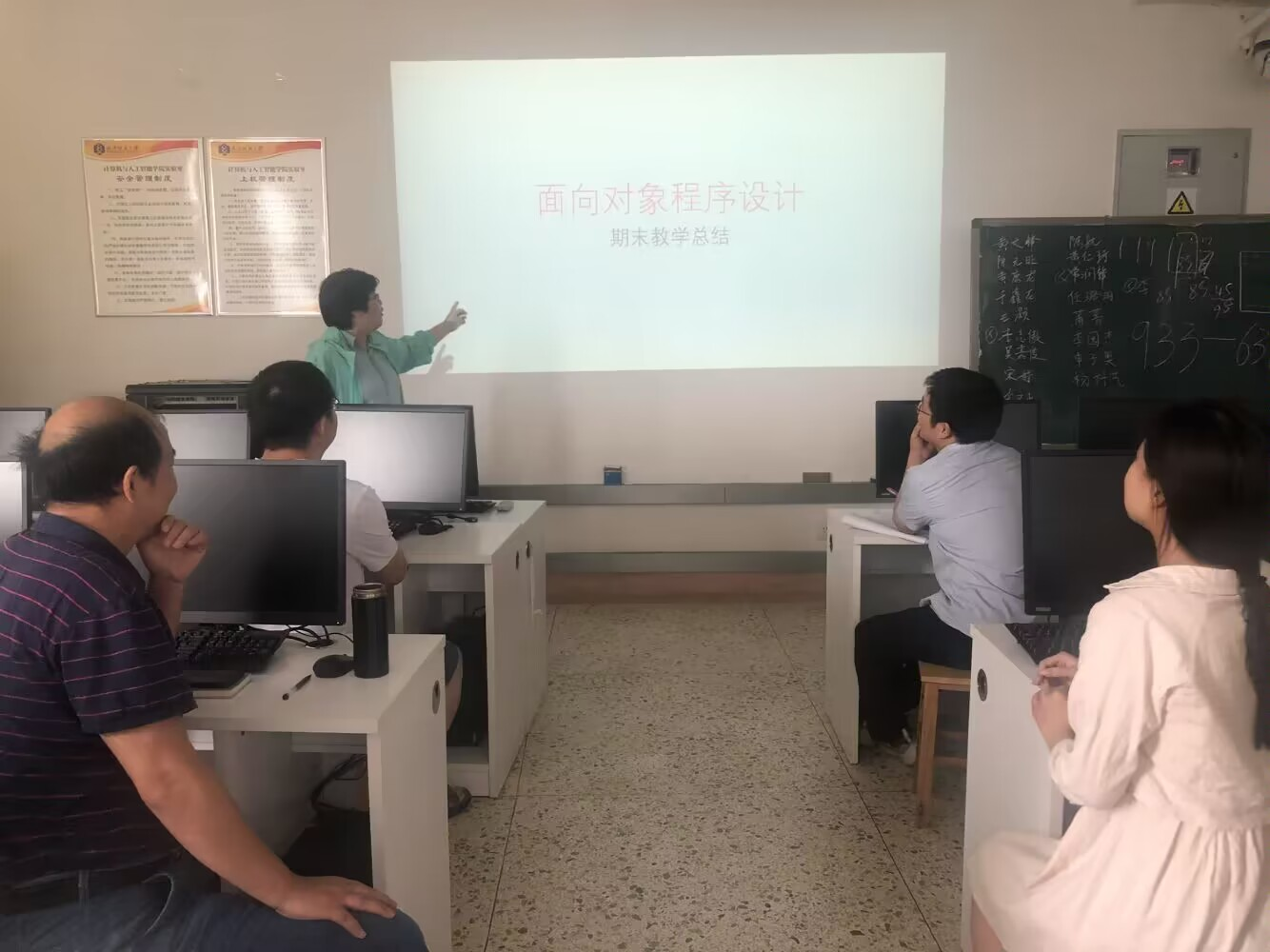 6月29日下午,面向对象程序设计教学团队教师在实训楼A3009举行了课程期末教学总结研讨会。这次研讨会由课程负责人崔树芹老师主持,课程团队成员何儒汉老师、张自力老师、熊明福老师和欧阳君老师参加。会议主要围绕课程期末教学总结、考核方式与教学效果评价、课程教学设计与有效实施、课程资源建设与共享、课程思政等主题展开。