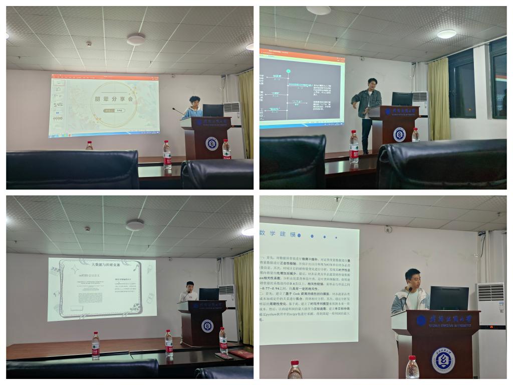 分享会中,刘芊蕊同学介绍了自己参加的多个程序设计竞赛,展示了自己取得的良好成绩。她强调了锻炼编程能力对大数据领域的重要性,并分享了自己在这方面的成长历程。此外,她提出在参加课外学科竞赛的同时,也应当平衡好课程学习,合理分配好时间,不断提高自身能力。郭沛然同学作为一名外院转入的大数据专业员工,展示了他在竞赛和项目中取得的优异成果。同时,以自身视角为大家剖析了参加竞赛、项目所需要的能力,结合自己的宝贵经验为各位同学在课外竞赛、项目实践方面提出了中肯的建议。郭唐胜同学以“大数据与科研竞赛”为主题,分享了他在科研竞赛方面的成就。他深入阐述了“多尝试、多动手”对于大数据专业的重要性,并通过个人经历和实践经验强调了这一点。此外,他以数据科学与大数据技术专业特点为背景,强调了与指导老师和团队成员保持良好沟通是成功的一大关键。李映进同学以其参与的数学建模竞赛经历为开端,讲述了在编程、算法和论文写作等方面的全面提升,这些方面对于拓展大数据思维具有重要意义。他深信参与这类竞赛对于大数据专业学习的积极影响不可估量。