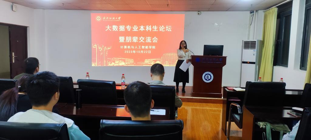 为深入了解同学们的所念所想,聚焦同学们的学业职业发展规划,学习生活经验分享以及朋辈心理疏导等方面的问题,10月22日大数据专业本科生论坛暨朋辈分享会于崇真楼(南楼)A4030如期举行。本次论坛邀请了就职于小米科技2012级员工熊炼带来企业大数据专业需求和本科学习关联报告,以及大数据专业2021级李映进、郭唐胜同学和2022级郭沛然、刘芊蕊同学分享自己的学习经验。论坛由大数据方向负责人王兆静老师主持,黄晋、阮晓莉老师以及2021级辅导员谢瑞清老师出席了本次论坛。