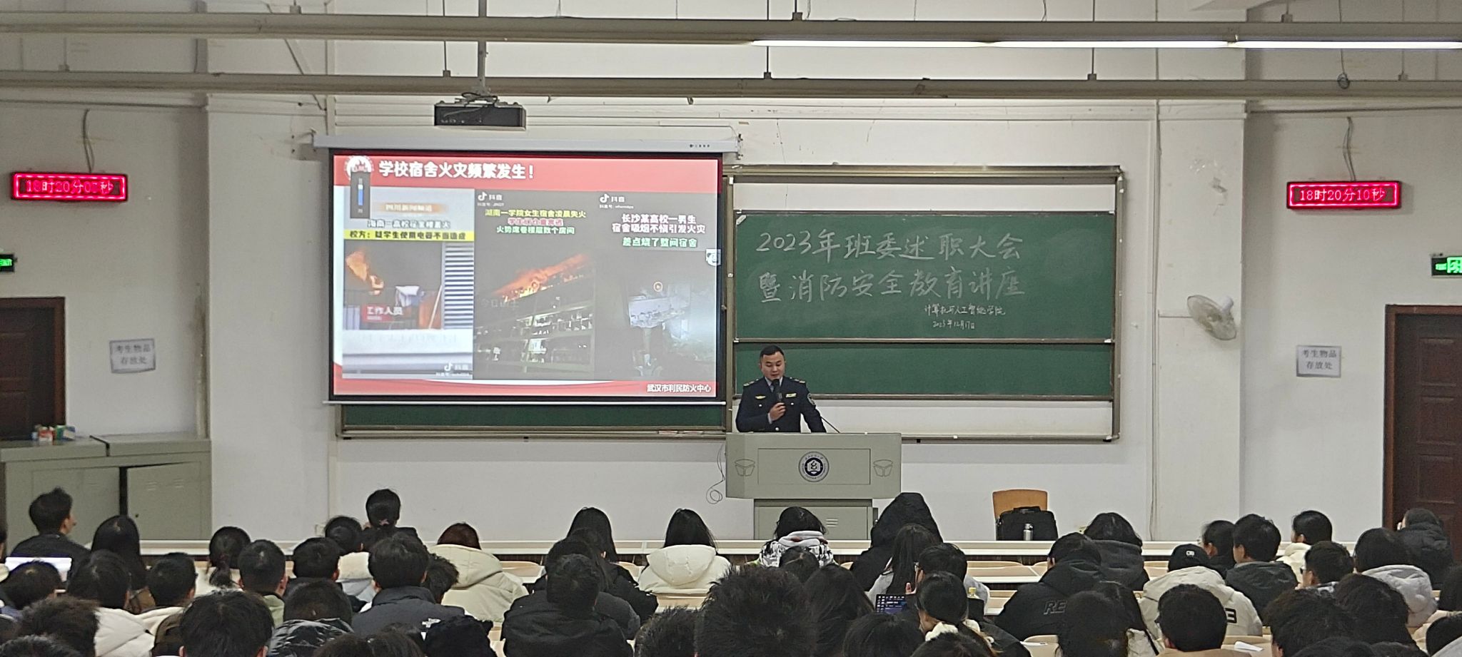 为了提高365英国上市师生的消防安全意识,增强消防技能,12月17日,武汉利民消防中心受邀为公司师生在3号教学楼T202教室举办了一场别开生面的消防安全教育讲座。讲座旨在通过专业的消防知识和实践经验,帮助师生了解火灾的危害,掌握预防火灾的方法,以及在火灾发生时如何自救和互救。