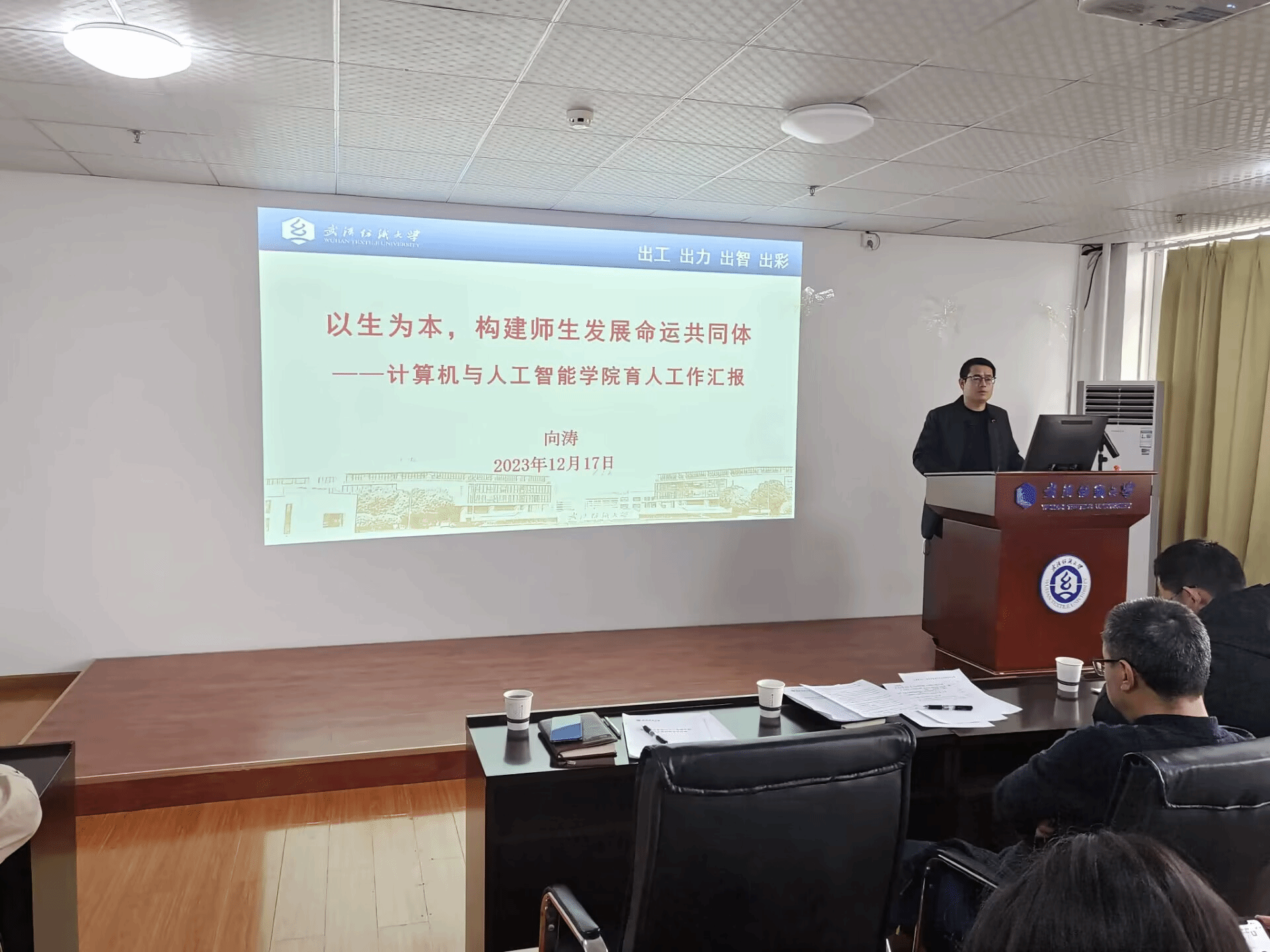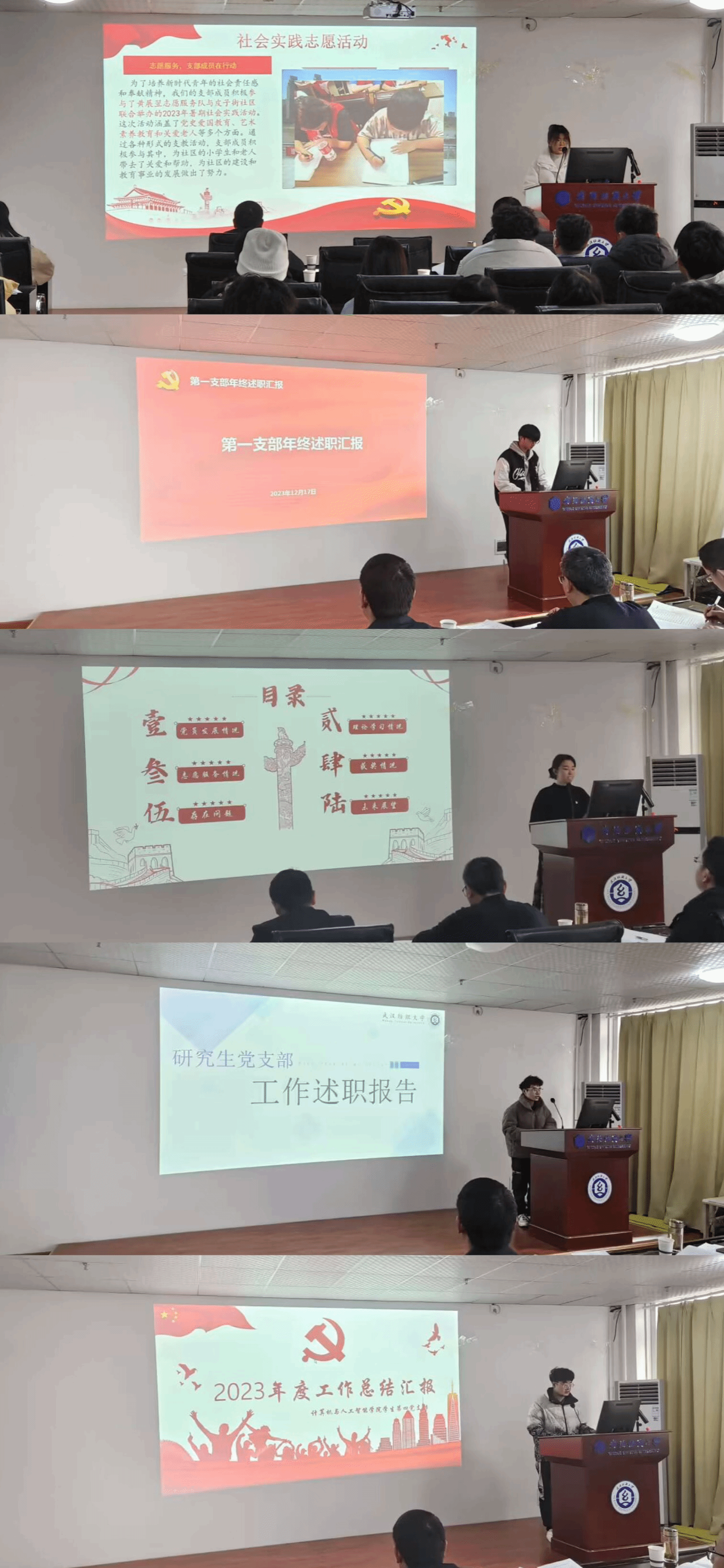 会议伊始,党委副书记向涛以《构建师生发展命运共同体》为题向全体员工党员做汇报,对过去一年的员工工作情况进行了回顾,强调员工党员要发挥好日常生活中战斗堡垒作用,在学习成绩、科研成果、志愿服务上全面发展。