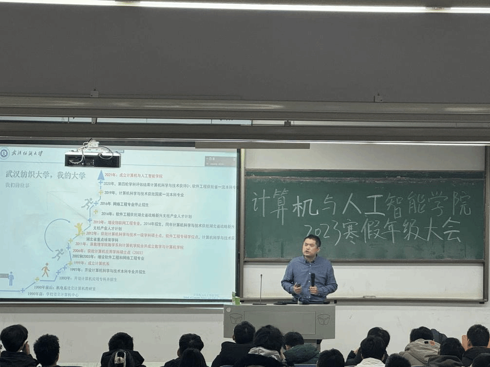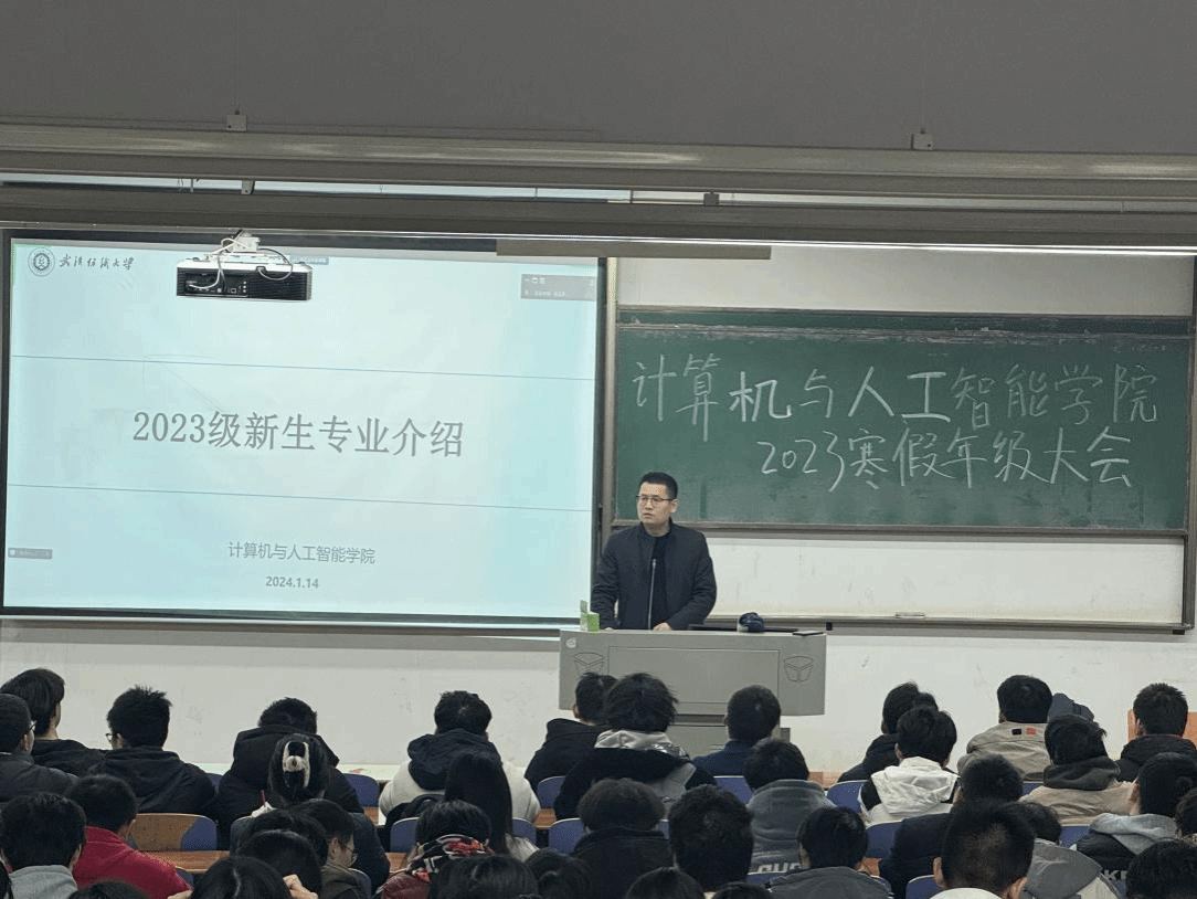 会议伊始,魏雄从计算机与人工智能专业的专业能力、培养定位入手,讲述了同学们的未来发展目标与方向,并寄语同学们应努力投身于学业当中,积极参加学科竞赛,成为对社会、对国家有帮助的栋梁之材。