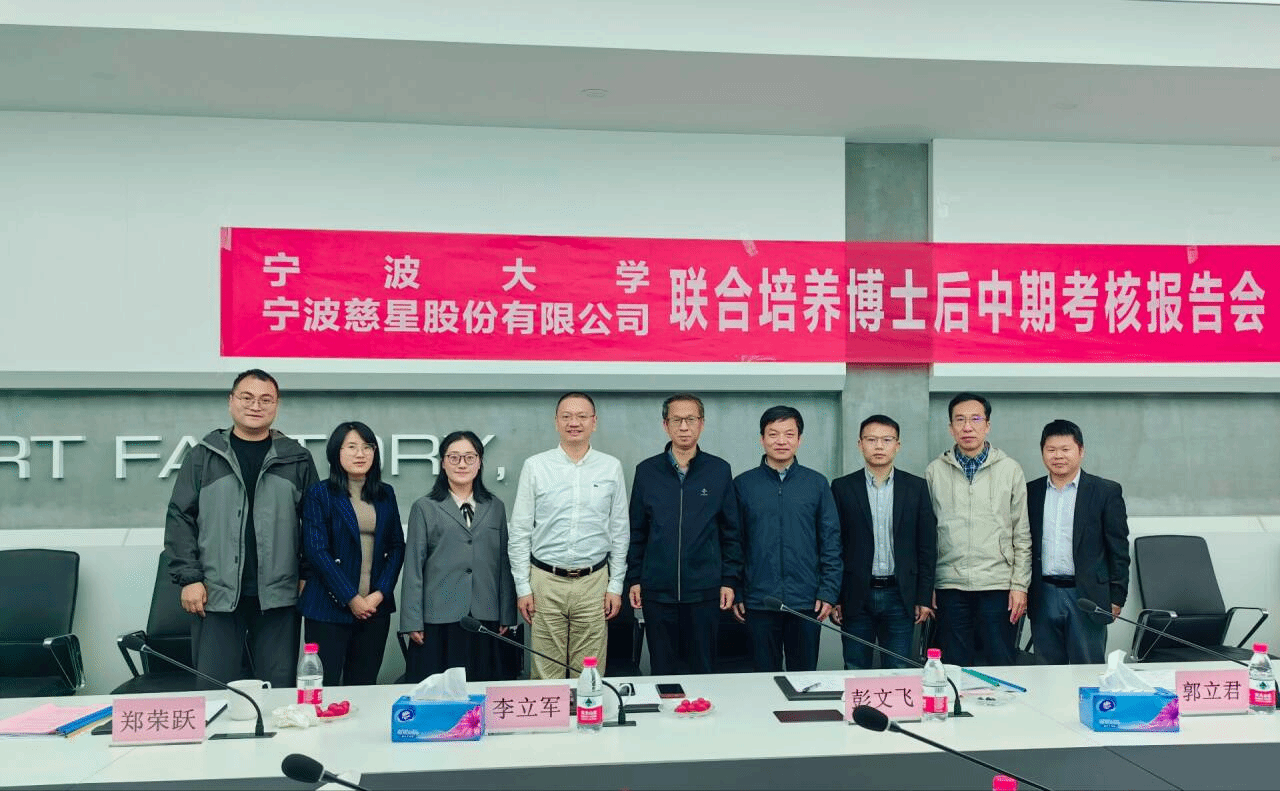 博士后中期考核评审组由宁波慈星股份有限公司教授级高工李立军,宁波大学郑荣跃教授、彭文飞教授、夏银水教授、郭立君教授组成,李立军高工为评审组长。