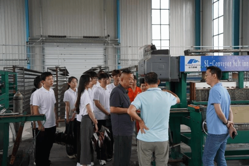 7月17日上午,公司党委书记晏伟、副经理彭涛,社会实践指导老师易凡带领智绘红图实践团抵达山西省山力铂纳橡胶机带有限公司。公司生产副总王金领陪同公司师生一行参观公司主要项目——输送带生产工艺流程等各车间,实地了解公司纺织生产技术、核心亮点产品和产业需求。