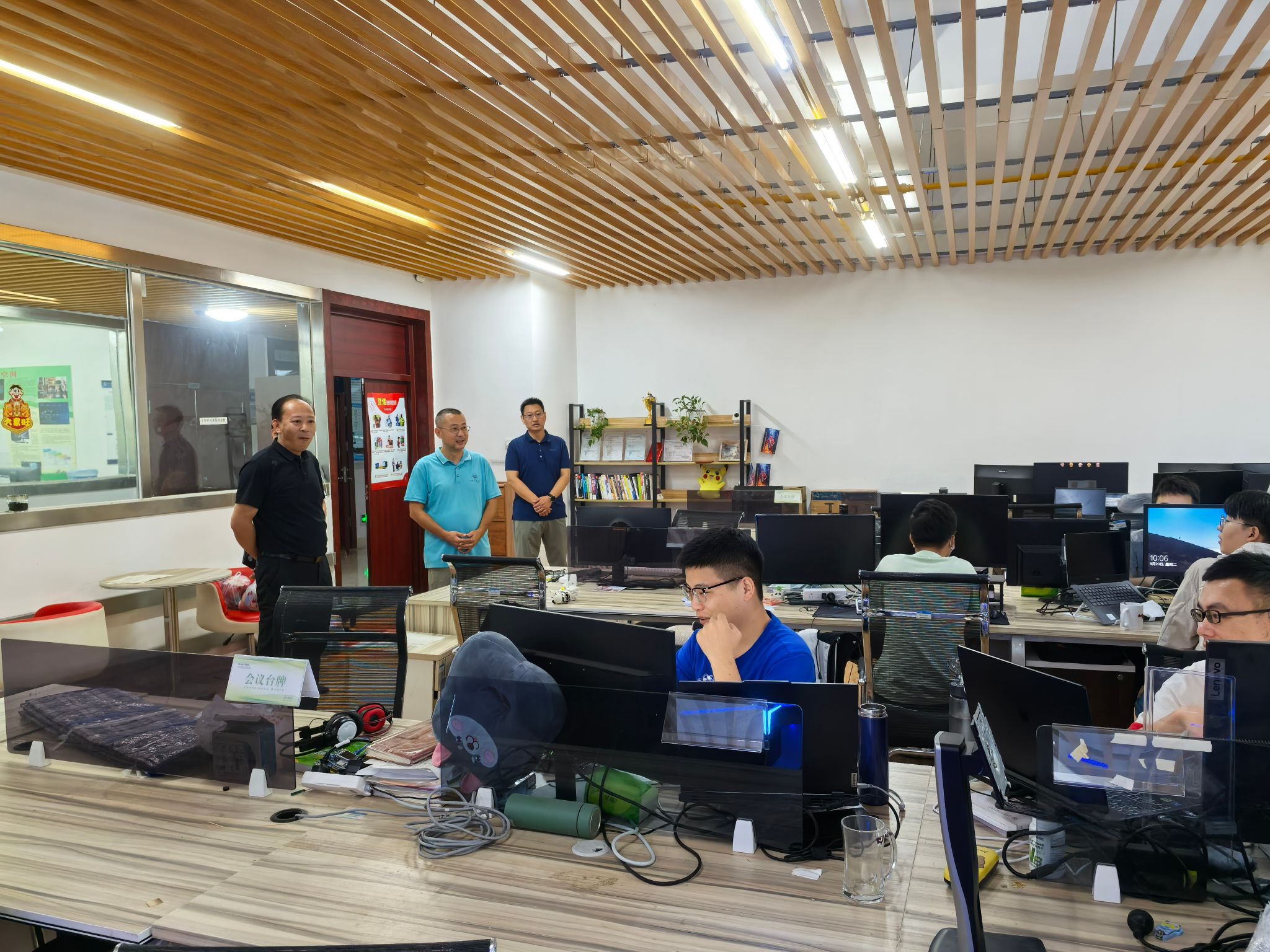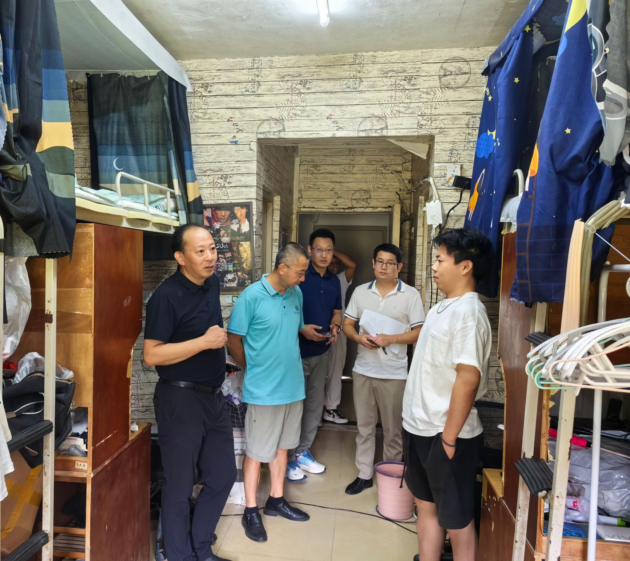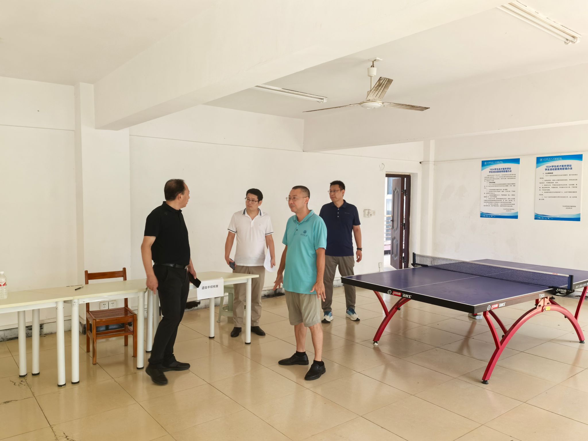 在五栋员工宿舍3楼员工活动室,冯军详细询问了关于活动室的使用情况、环境设置、场地维护等内容,肯定了公司对活动室的建设和使用,强调各项活动的开展要注意安全,要定期安排检修工作,确保活动室特色鲜明,环境优美。