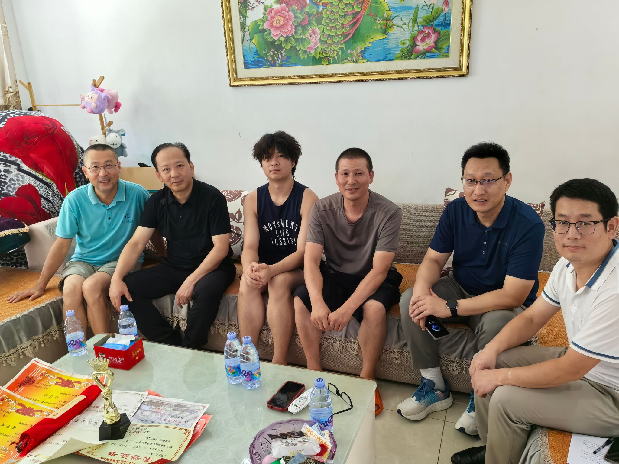在武汉市江夏区人工智能12401班高才念的家中,高才念的爸爸热情地接待了冯军一行。冯军为员工及员工家长介绍了关于公司、公司的基本情况和近年来取得的辉煌成就,冯军强调2024届新生是幸运的一届,“你们录取通知书上有个小秘密,这个小挂件,它可是月面国旗的同款产品!”。听到这里,高才念与其父亲一同仔细观察着公司这份独特的纪念品。