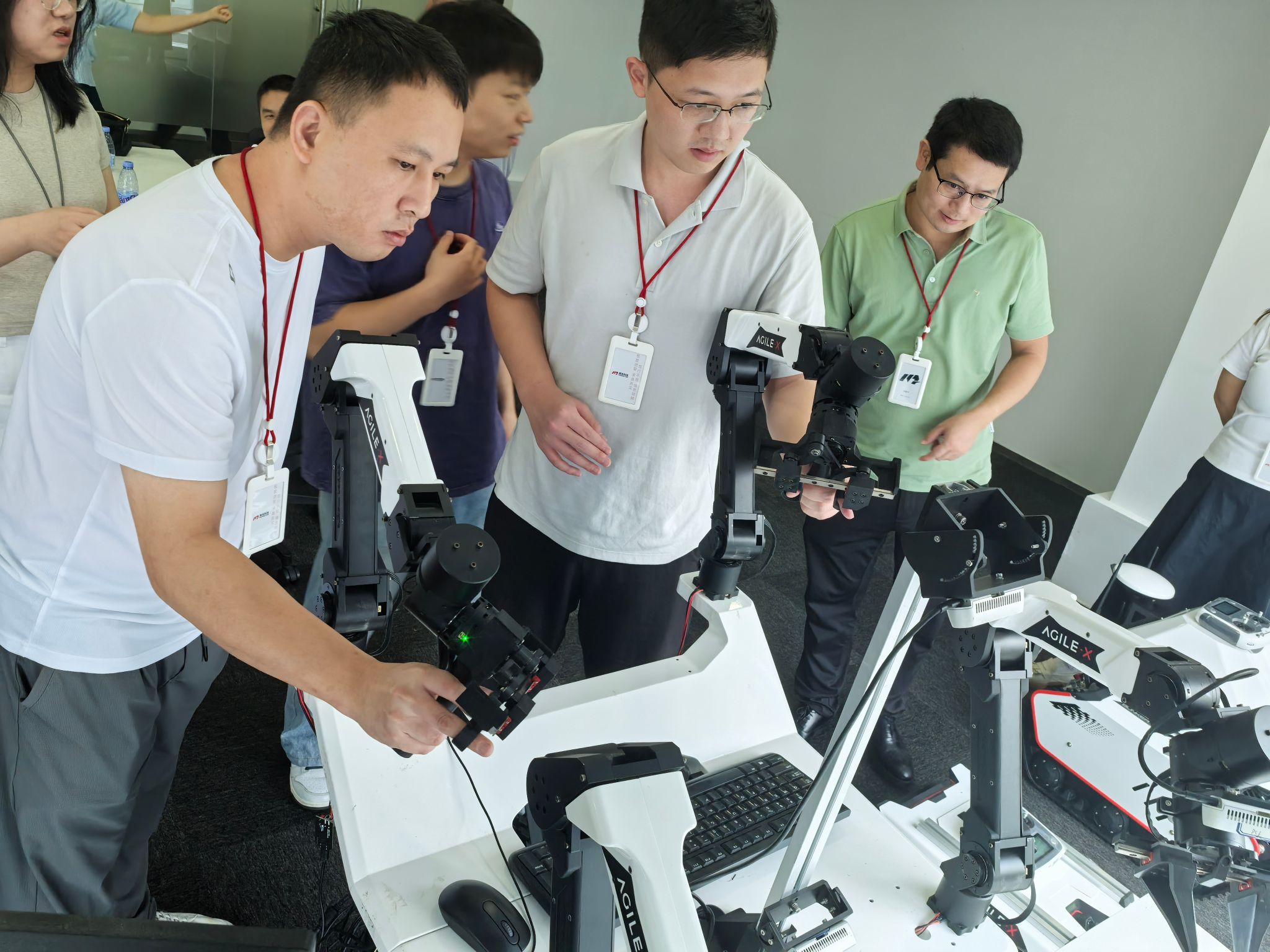 随后调研组一行前往深圳松灵机器人有限公司与公司负责人进行座谈,重点在技术创新成果、业务布局以及与高校教育合作成功案例的交流,希望通过协同育人,进一步实现资源共享、优势互补,共同推动人工智能领域的技术创新和人才培养。同时还针对员工实习、就业等方面进行探讨。会后在工作人员的指导下,调研组对公司主营产品进行了实操,对公司有一个更直观的了解。