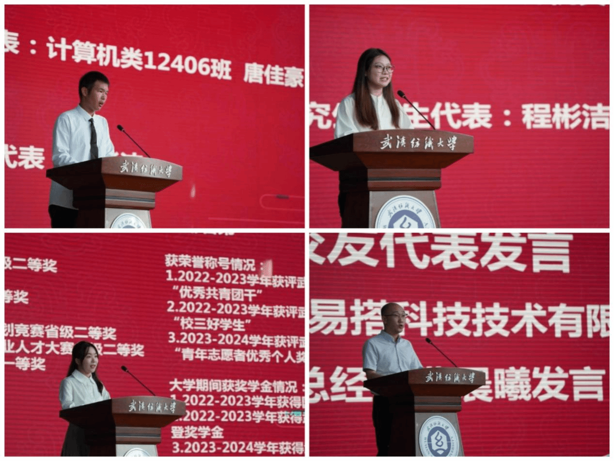 本科生新生代表唐佳豪和大家分享了自己选择365英国上市的初心和历程。他表示作为计智学子,应当持续学习、保持热爱、努力奋斗,继承并发扬纺大精神。研究生新生代表程彬洁则为本科生分享了如何摆脱学习中的迷茫,并指出在研究生阶段需要注意的三大关键点:明确个人的学术目标、掌握扎实的专业技能、以及注重综合素质的全面提升。在校生代表周锦璇则从坚定理想、强健体魄、学会自我反思三个方面分享了自己在大学期间的经验。她鼓励新生们在大学这个成长平台上,全面提升自我,为今后的发展打下坚实的基础。2007级员工、深圳积木易搭科技有限公司副总经理曹晨曦作为员工代表发言,他感恩母校对自己的培养,分享了自己的学习经历和职场心得,从一个过来人和企业管理者的视角鼓励同学们夯实专业能力、提升软技能,珍惜时间,持续学习,不仅要学习专业知识,更要学习人文知识。