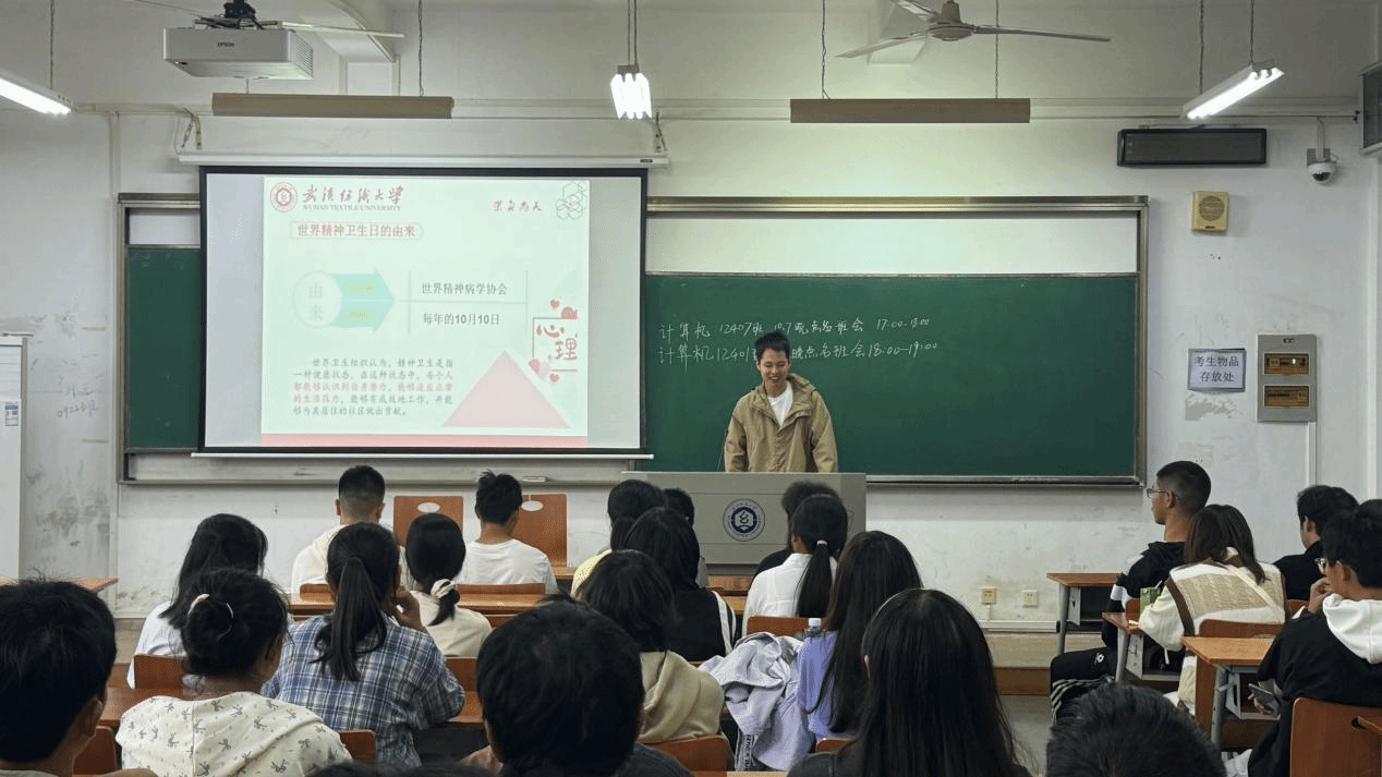 班会开始前,各年级辅导员清点人数,确认员工国庆假期的返校情况。班会上,各班的心理委员先介绍了世界精神卫生日的由来、宗旨和意义,并呼吁同学们积极参加公司以“2024年世界精神卫生日”为主题的5项活动。随后,以心理学家马斯洛的十条标准引出对自己心理健康水平的测验和学会自我关照的方法,使同学们了解自己,学会自我调控。