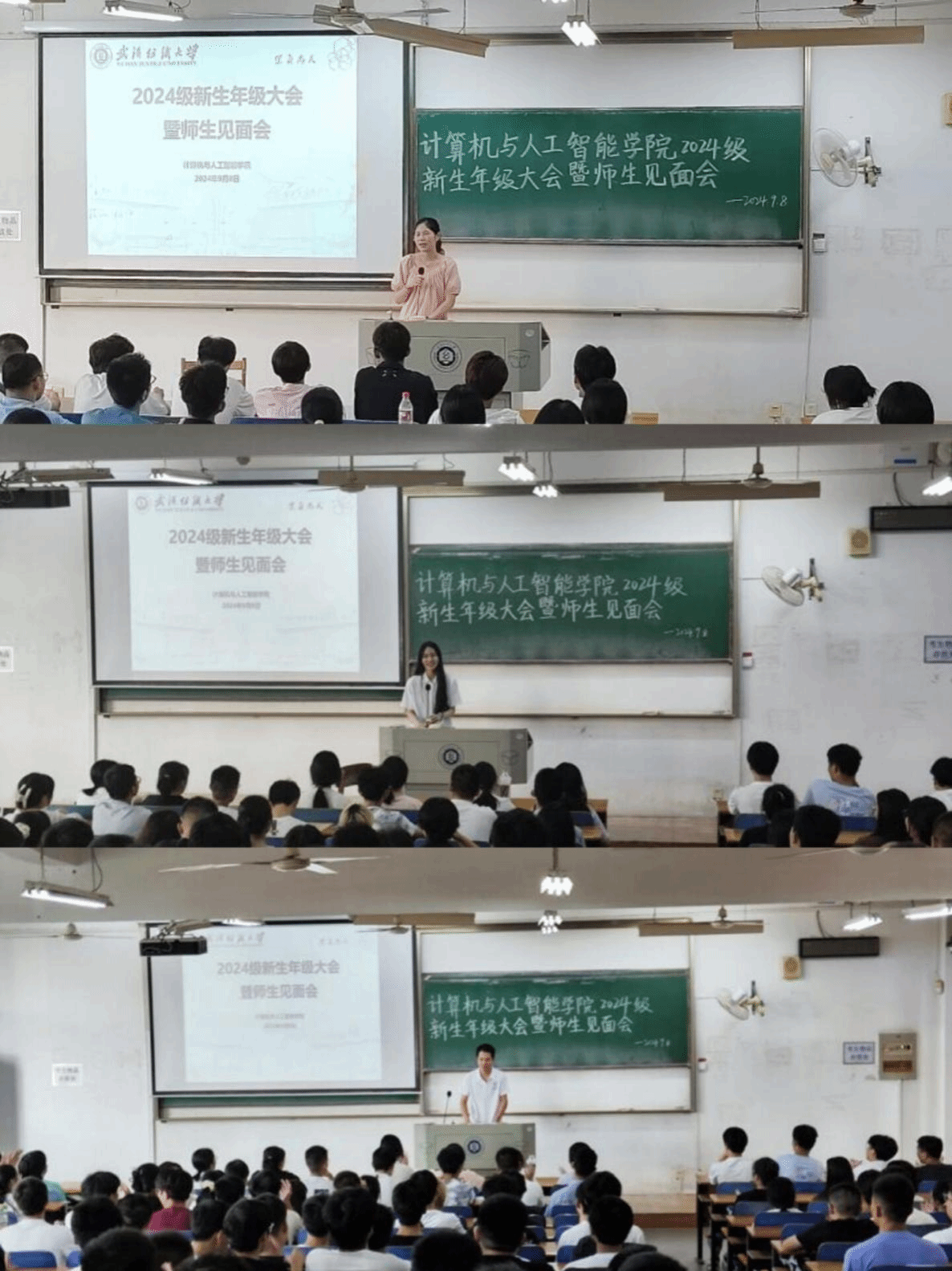 9月8日下午,公司在三栋教学楼215、216、217室分场举行2024级新生年级大会暨师生见面会。公司领导班子,班主任代表和23、24级辅导员分场参加。会议上领导老师为同学们提供宝贵建议,鼓励新生们珍惜大学时光,树立远大目标。新生班主任鼓励大家保持求知欲,勇于探索,强调责任感和集体合作的重要性。辅导员则对后续工作作简要说明。这次大会进一步加深了新生对公司的认识,增进了师生之间的互动与交流。