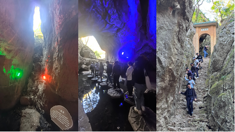 在专业教练的带领下,老师们徒步欣赏了白云洞内奇特天然的岩溶景观,参观了拥有浓厚道教文化的建筑与雕塑,体验了“天窦门”的陡峭惊险......山水间充满了欢声笑语。