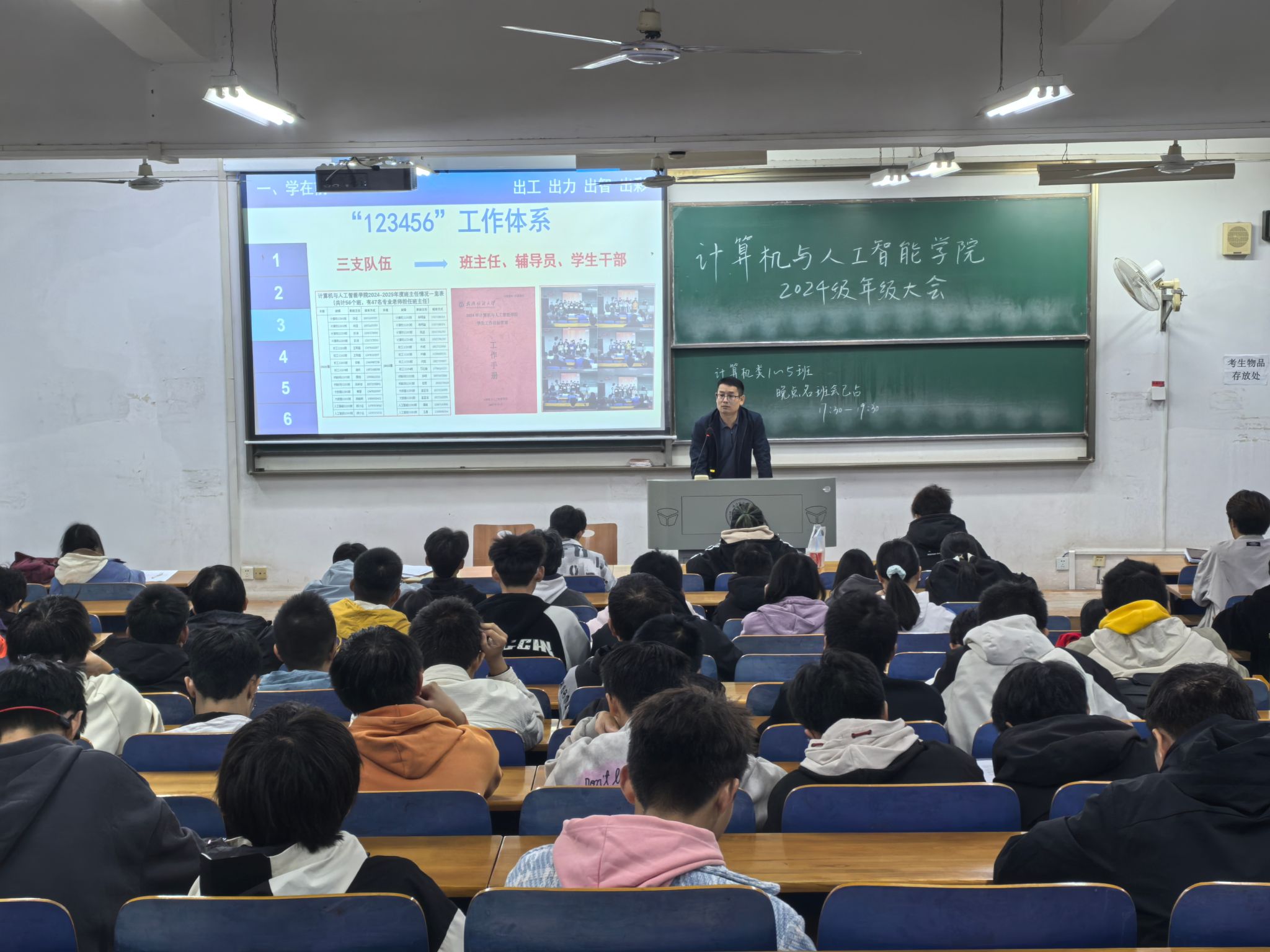 为更好地引导新生荣院爱院,了解公司近年来取得的成就,帮助新生做好大学学习规划,11月17日晚,公司召开2024级新生年级大会,公司党委书记晏伟、党委副书记向涛,2024级新生辅导员和2024级全体新生共同参与。