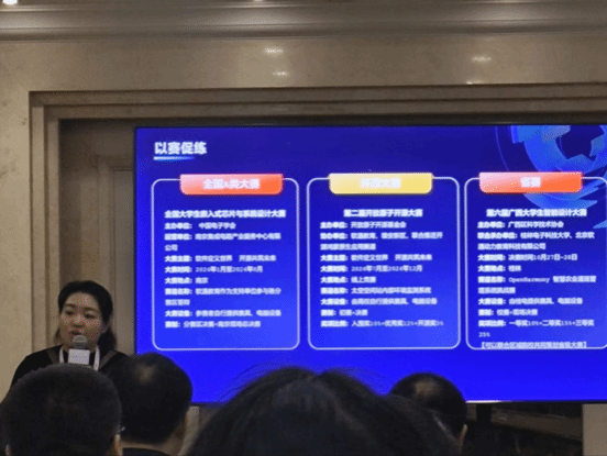 论坛始伊,来自开放原子开源基金会、教育培训部资深顾问韩江先生对于论坛的举办致辞。来自北京软通动力科技教育有限公司的产品中心总经理刘静女士以《open Harmony在物联网专业课程体系中的应用与实践》为题为我们带来了生动的演讲。Open Harmony技术俱乐部资深导师以《面向不同院校的open Harmony培养方案》为题与大家分享了院校运用open Harmony进行培养的方法。武汉华夏理工公司信息工程院经理夏婷女士向大家分享了open Harmony的校企合作实践成果。西南科技大学计算机科学与技术公司贾小林副经理,与我们进一步探讨了《本科操作系统open Harmony化课改方案》。来自浙江万里公司的梁丰教授发表了以《开源共创打造鸿蒙教育新形态》为题的演讲,在此次讲话中,梁教授提到要重视员工基础教学,如c语言等基础编程语言的学习,并且向我们阐述了其中的重要性。来自北京软通动力技术研究院有限公司、软通计算研究院营销总监齐悦先生以《教育新创与AI发展趋势探讨》为题的讲话,齐悦总监提到目前教育软件的AI化对于员工学习的好处和其今后的发展。深圳鸿湖万联科技发展有限公司产融方案总经理连志安先生发表了以《OpenHarmony产教融合与人才培养实践》为题的演讲。最后,由唐佐林老师主持的以《如何高效的实现开源背景下的惨叫融合方案》为题的圆桌讨论也顺利展开,在此次讨论中,各位专家学者提到,在对员工教育的同时,老师的教育培训同样也至关重要,只有两者同时进行才能达到更好的效果。此外,此次论坛还设立了激动人心的抽奖环节,创新班的同学不仅收获了宝贵的知识,也得到了其他的精美礼品。