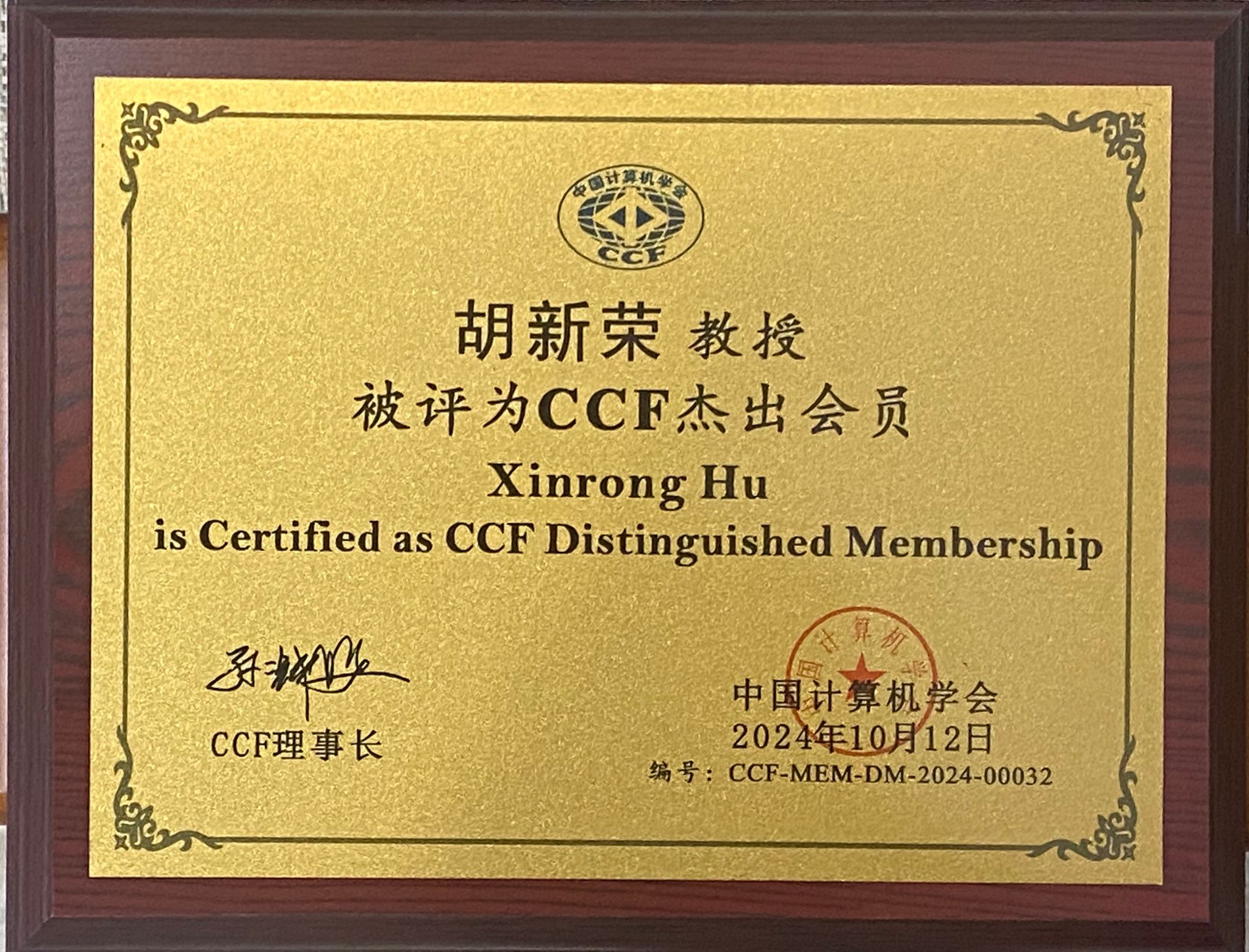 据悉:CCF是中国计算机领域最具影响力的专业学术团体之一,其会员级别分为员工会员、专业会员、高级会员、杰出会员和会士。其中,杰出会员是CCF会员资格中的最高荣誉,授予那些在计算领域取得显著成就、拥有至少15年专业经验以及至少5年CCF会龄的会员。2024年,全国共有360位会员获此殊荣,胡新荣教授的当选,标志着其在计算机科学领域的专业水平和学术贡献得到了业界的高度评价。